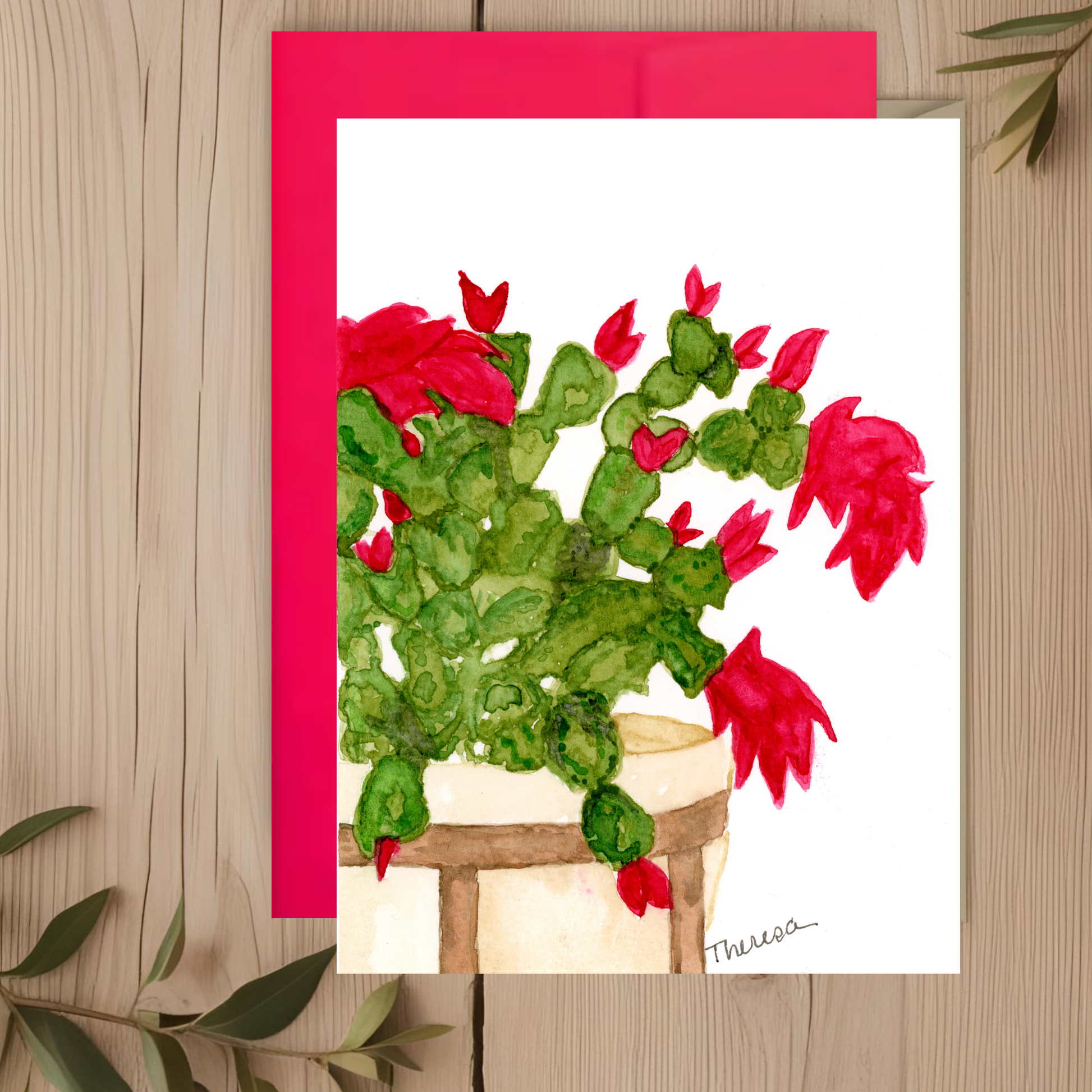 Send a little holiday magic anytime with this Christmas Cactus note card. Featuring enchanting blooms that sparkle with festive cheer, it’s perfect for spreading joy during the holidays or brightening someone’s day all year round. Add a playful touch to your messages with this charming card!