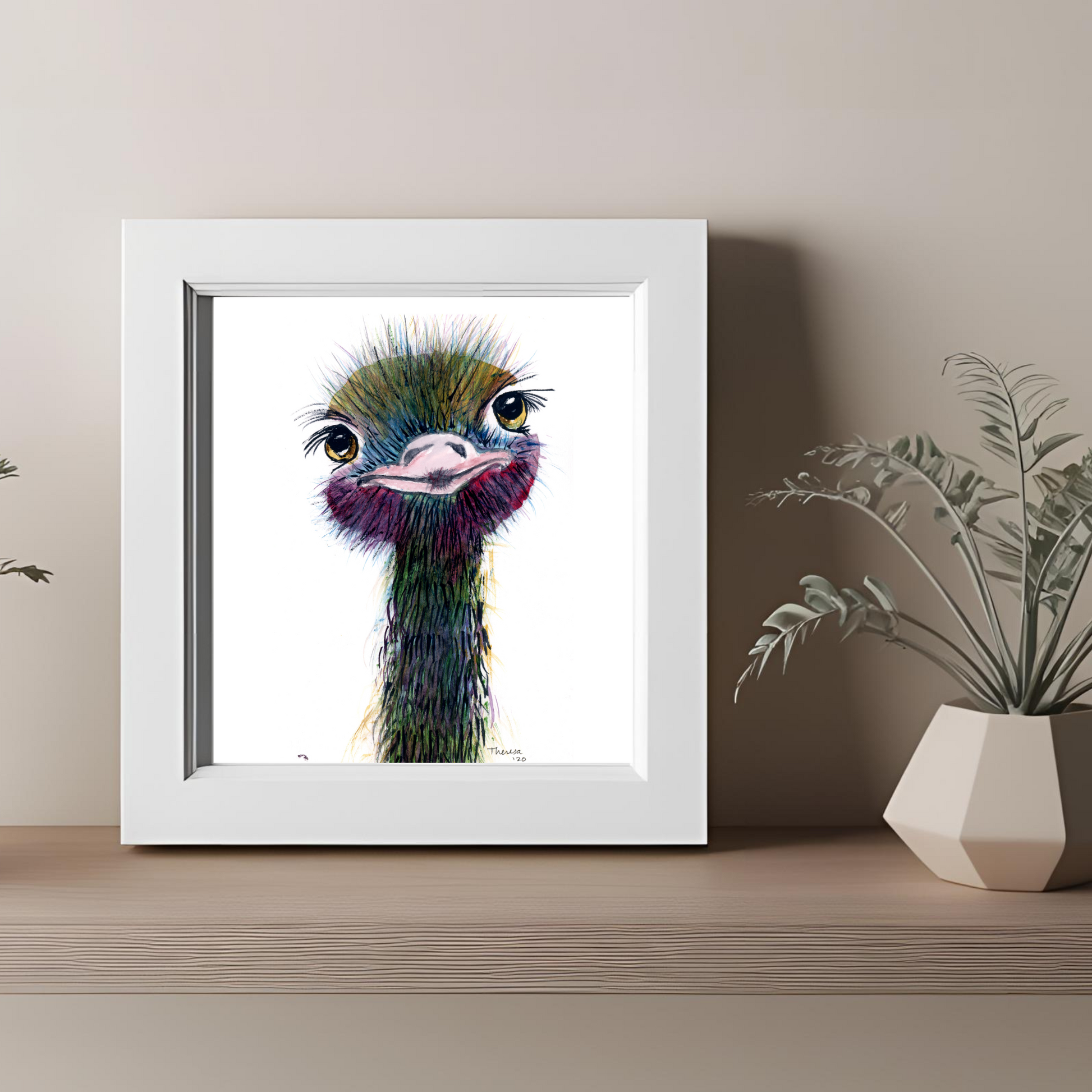 Add a splash of whimsy to any space with this playful ostrich print. Featuring a vibrant watercolor design, it brings fun and charm to your home, office, or nursery. Perfect for brightening walls with a touch of cheerful creativity!
