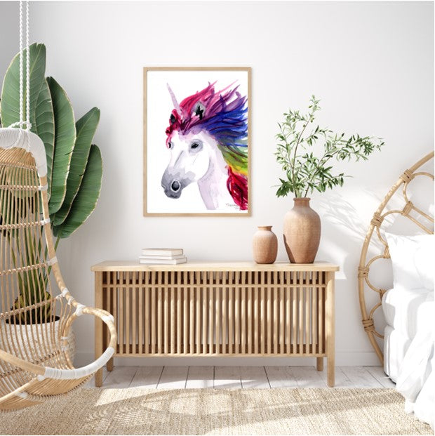 Bring a splash of magic to any room with this vibrant Unicorn Print. Featuring rainbow-bright colors, it’s perfect not just for kids but for anyone who loves to celebrate the childlike wonder within. Add a playful touch that sparks joy and imagination wherever it’s displayed.
